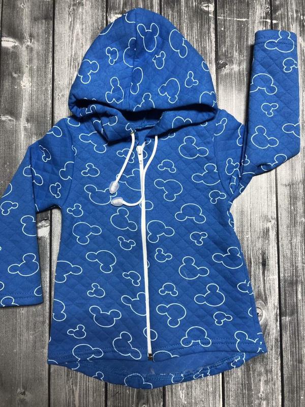 Пайта Міккі. Ззаду подовжена, з капюшоном, на блискавці. Тканина: капітон. Україна. Розмір: 📌28/56 (98-104 см): плечі 26 см, довжина рукава від плеча 33 см, довжина спереду 37 см + 4 см ззаду, НОГ 29 см.