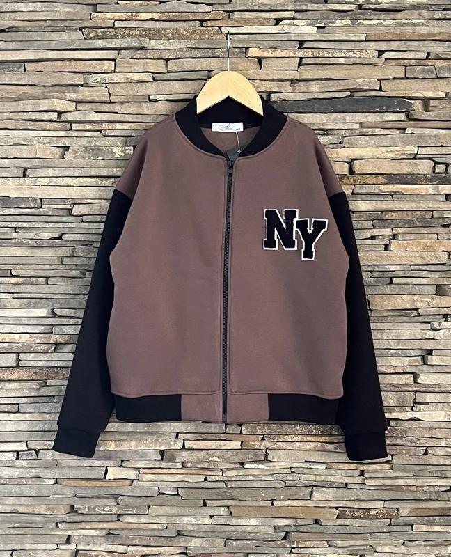 Бомбер унісекс,з боковими карманами Тканина -трьохнитка з начосом. На рукавах манжети застібається на замочок. довжина\пог\рукав від горловини 146--53-50-64---1шт 152--55-51-65---1шт
