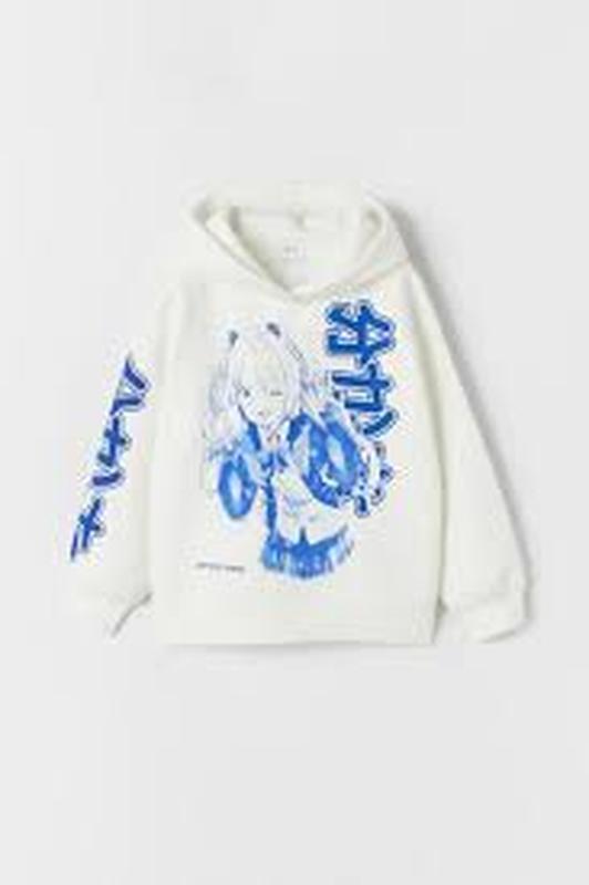 Худи с длинными рукавами и манжетами. Принт спереди, рельефная деталь и надпись на рукаве. Разрезы по бокам снизу, манжеты в рубчик.