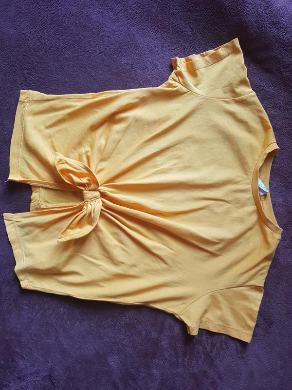 В отличном состоянии продам топ на девочку. Цвет жёлтый, ближе к оранжевому(яркий) на фото не смогла передать. Х/б очень лёгкий. Замеры длина от плеча вниз 44см(впереди) по спинке 42см, ПОГ41см