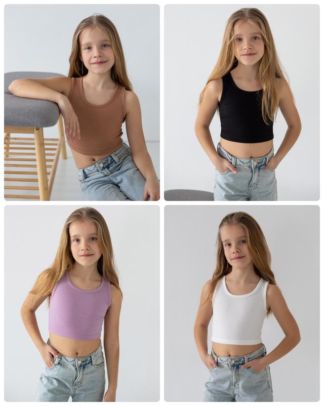 Базовий кроп-топ для дівчат-підлітків з легкого полівіскону. Модель прилеглого силуету на широких бретелях, з округлим вирізом, виконана в декількох кольорах - як світлих, так і темних. Топ відмінно доповнюється будь-якими джинсами з високою посадкою, штанами, шортами і спідницями. Полотно високої якості, завдяки фактурі "рубчик" досить еластичне, добре облягає фігуру. Полотно: полівіскон Склад: 50% віскоза, 45% поліестер, 5% еластан Поради щодо догляду: прати при температурі не більше 30°C. Допускається прання в режимі "ручне" або "делікатне".