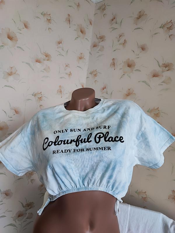 Чудовий брендовий топ із натуральної бавовни. Має дуже ефектний вигляд. Короткий рукав, внизу на гумці. Тканина тягнеться. Стан ідеальний.