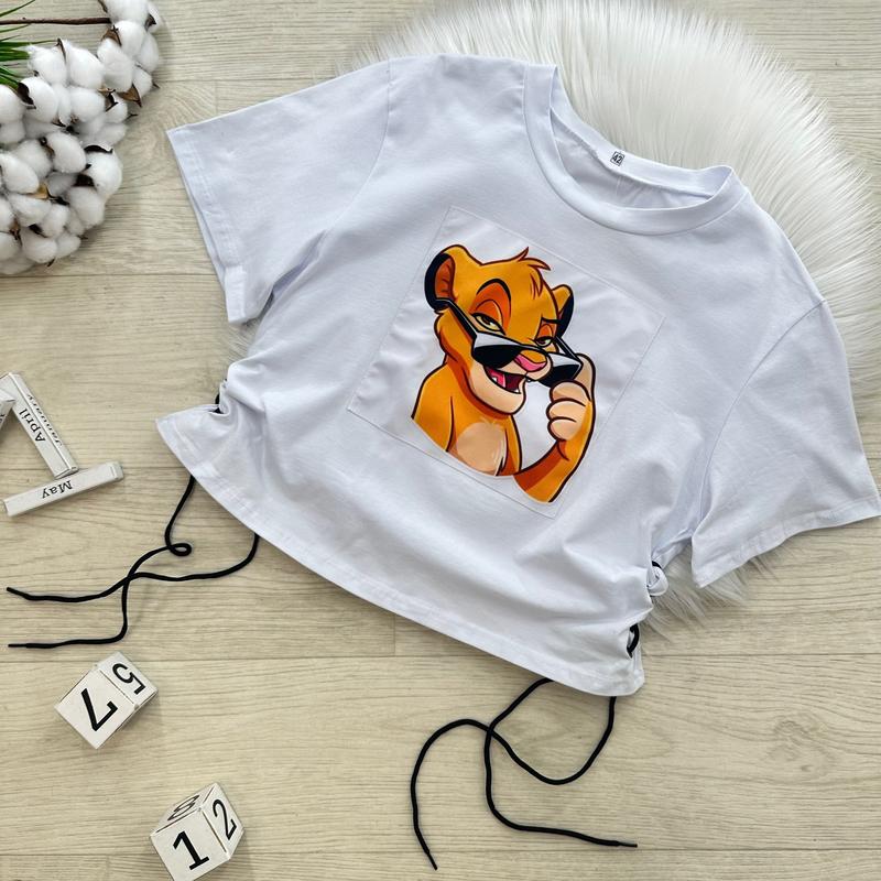 Футболка-топ з затяжками в боках 🤩🤩🤩 Базовий білий колір під будь який образ 🥰 Непаркий легенький трикотаж 👌🏻 Улюблені діснеєвські герої 😍 Вільний крій ❤️ Тканина: трикотаж Виробник: Україна 🇺🇦 р.42 (зріст 164)-1шт ЗАМІРИ ⤵ +/- 1-2см!!! ◾р.42 (зріст 164)- довжина 45см/ПОГ 47см