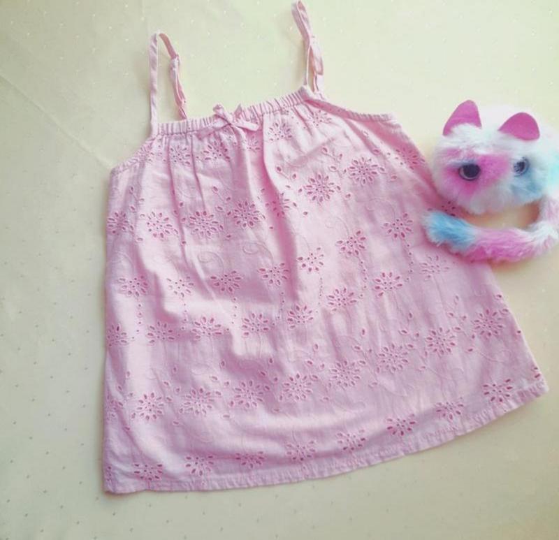 Легка, красива прошва. Виглядає ніжно. Заміри: довжина 49 см (вкорочуються бретелі), груди 31 см.