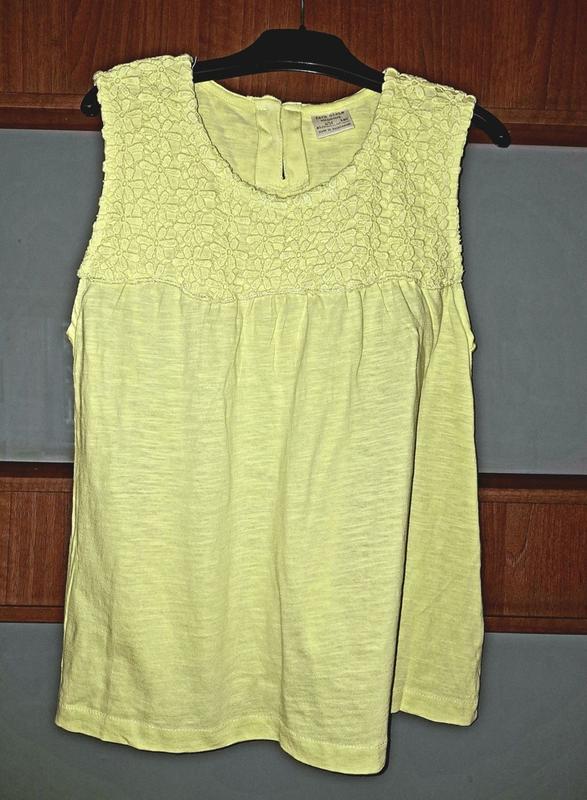 Отличная легкая туника Zara лимонного цвета на рост 140 см и возраст 9-10 лет. Хлопковая, украшенная рельефным кружевом, на запах по спинке. Дело в хорошем состоянии и без повреждений. Длина по спинке- 48,5 см * Еще больше хороших вещей у меня на странице.