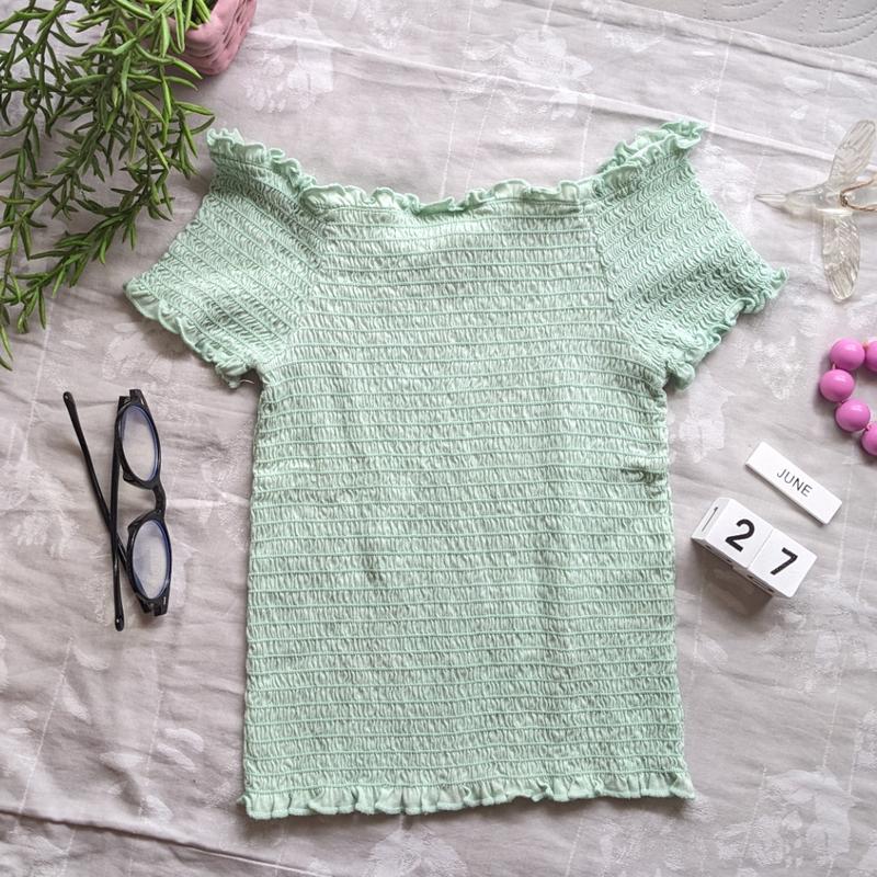 Красивий м'ятний топік у прекрасному стані повністю перестрочена і резинками 27 41 . зріст. - 134 140 см Стан п'ять з п'яти бавовна