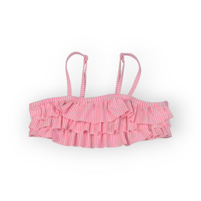 Дитячий верх від купальника, топ для дівчинки рожевий у смужку, розмір 122, 7 років, з рюш...