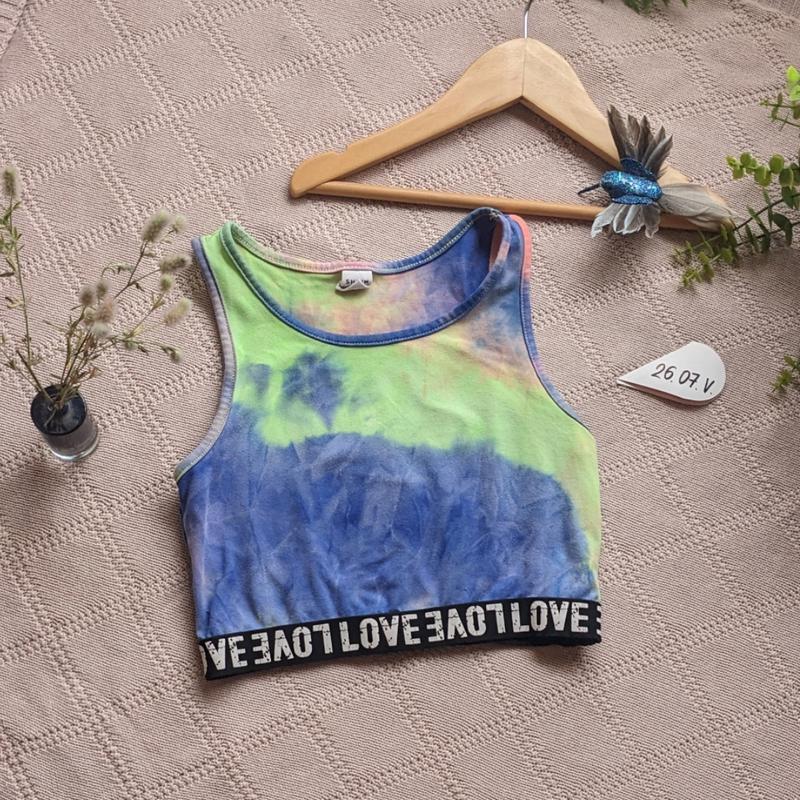 Топ у стилі Тай дай під мишки 31 42 знизу 25,5 37 трішки є потертості . але виглядає прекрасно мін замовлення від 80 грн 🔖🔖🔖