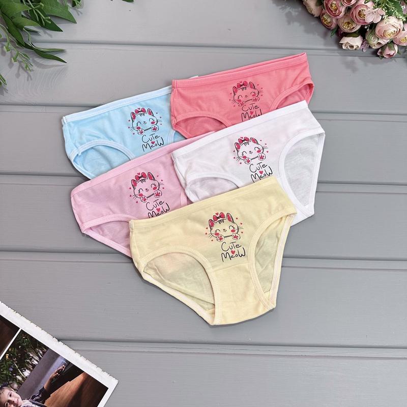 Набор трусиков котик 5 шт разные цвета. Хорошее качество, рисунок - прин. Производитель Турция 📐Замеры: S (ориентировочно 92-104) - ширина 20/ высота 15,5 M (ориентировочно 110-122) - ширина 22/ высота 17 L (ориентировочно 128-140) - ширина 24/ высота 19