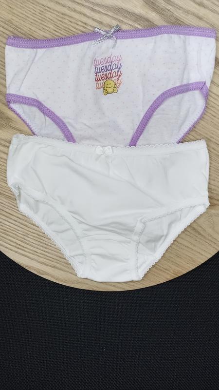 Трусики брифи котонові на дівчинку, Primark. 2 пари/набір Розміри в наявності: р. 98 - на 2-3 років - 2 од. Заміри: ширина по гумці - 20см глибина 16см 100% бавовна Білизна нова, зі стоку. В деяких парах можлива відсутність внутрішньої бірки Ціна вказана за 1 од. Продаж набором