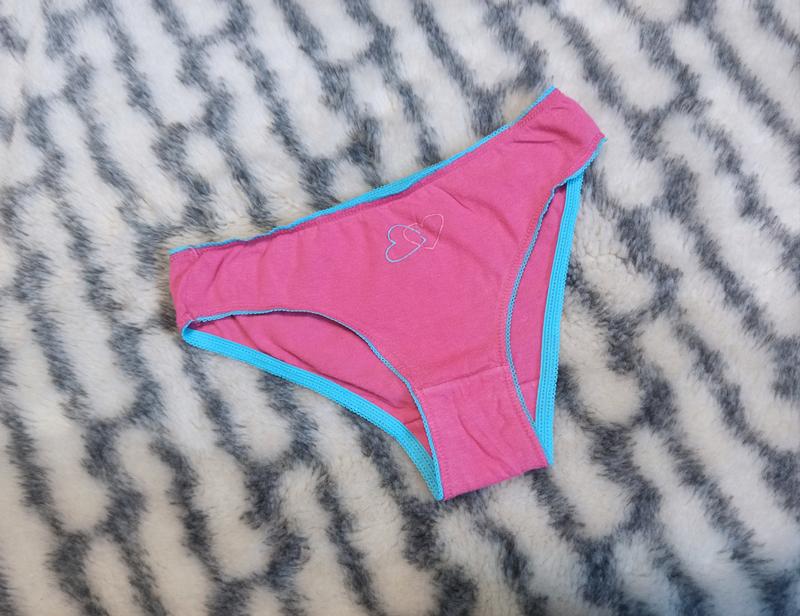 Бавовняні трусики для дівчинки Розмір - 122/128 Заміри: ширина по резинці 25-36 см, висота посадки 17.5 см. Внутрішня етикетка зі складом відсутня. Тканина - бавовна. В задовільному стані