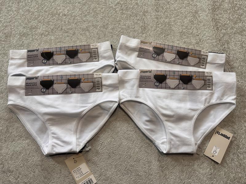 B наявності труси бразиліанти для дівчинки від німецького бренду peppers, торговий дім Lidl. Матеріал 88 % поліамід, 12 % еластан (Lycra) Розміри 134/140 (8-10 років): ширина по резинці 27см, висота 18,5см 146/152 (10-12 років): ширина по резинці 30см, висота 20см Ціна 70 грн/одиниця. Або 250грн, за упаковку 4шт.