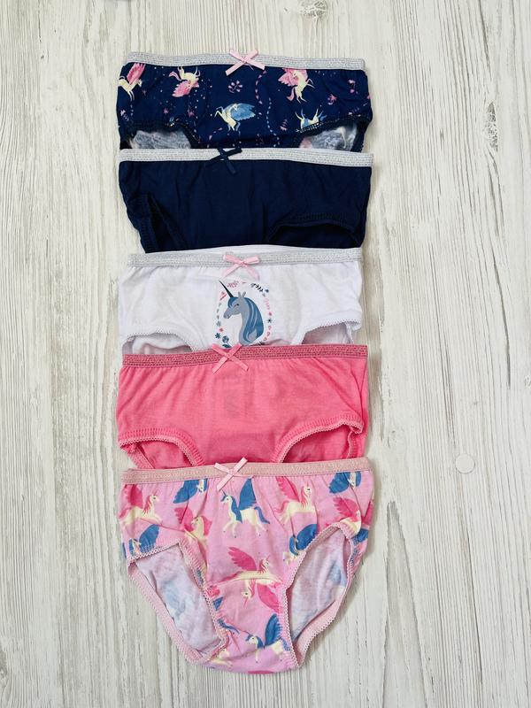 Яскравий набір трусиків для дівчат 🌸 100% Cotton Напів обхват пояса -19 см Посадка -15 см Розмір -86-92(1-2роки) В комплекті 5шт. Також можна придбати поштучно по 60 грн/шт