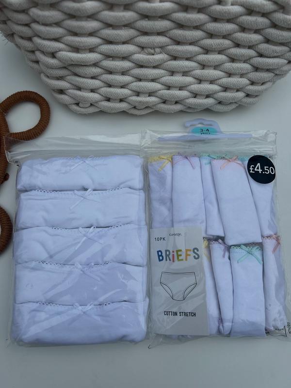 🌸Набір трусиків для дівчаток George 💰 Ціна: 250 грн/5 шт Однотонні трусики 🌸 Виготовлені з м’якої бавовни з додаванням еластану — приємні до тіла та добре тягнуться. Ідеально для щоденного комфорту малечі. ✅ Оригінал George (Англія) 🧺 Легко перуться, не втрачають форму 💖 Гарний вибір для чутливої шкіри 📌 Кількість обмежена!