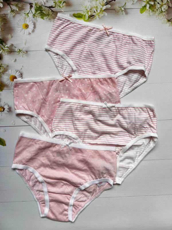 Набір трусиків сліпів на дівчинку. Виробник: Primark (Англія). Розміри: 116 (5-6 років). Склад: 100% бавовна. Якість гарна, трусики м'якенькі, приємні на дотик. Колір: різні кольори. Ціна 180 грн. за 4 штуки (комплект).