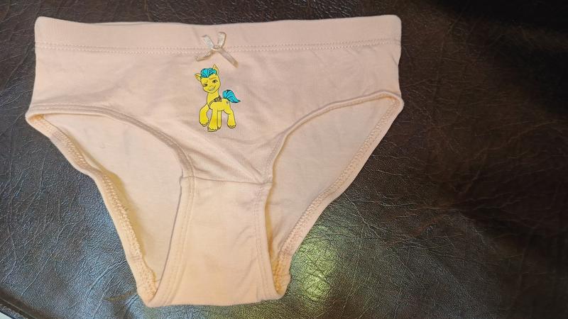 Труси виконані з м'якої трикотажної тканини, з еластичним поясом. З високим вмістом бавовни. Підходять для повсякденного носіння. Дитяча білизна для дівчат. З улюбленими героями. 95% бавовна, 5% еластан Розміри: 98-104 110-116 122-128