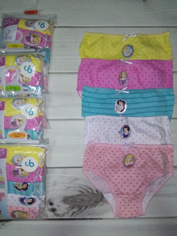 Набір трусиків Disney в наявності розміри 98(2),104,116(2). 98: ширина 19 см, висота 16см 104:ширина 21 см, висота 17 см 116:ширина 22 см, висота 18см Склад тканини: 100%котон Країна-виробник: Китай