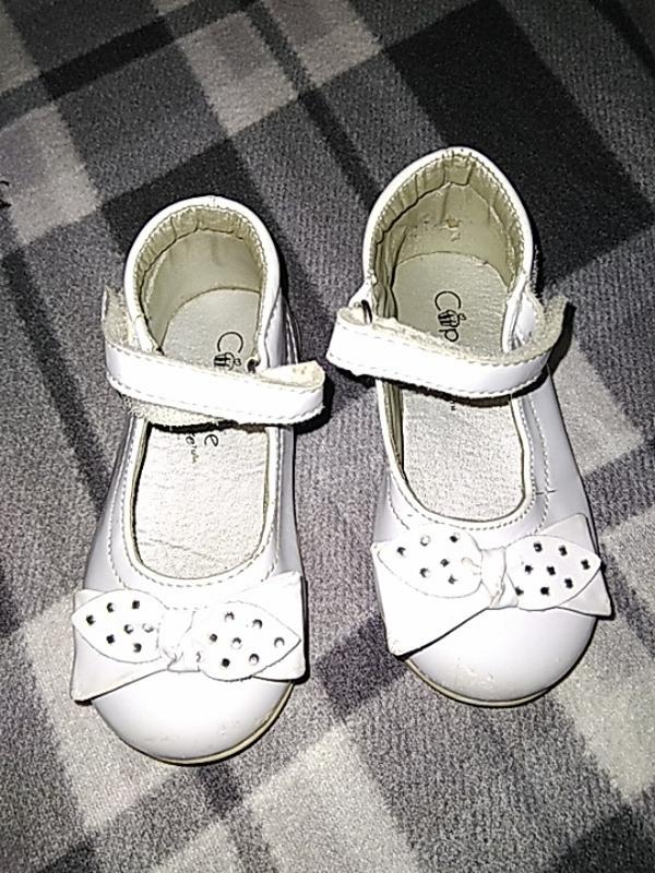 Туфлі білий лак на ліпучкі , розмір 21, по стелькі- 12, 12 5, 13 см. стан гарний одягали пару раз.