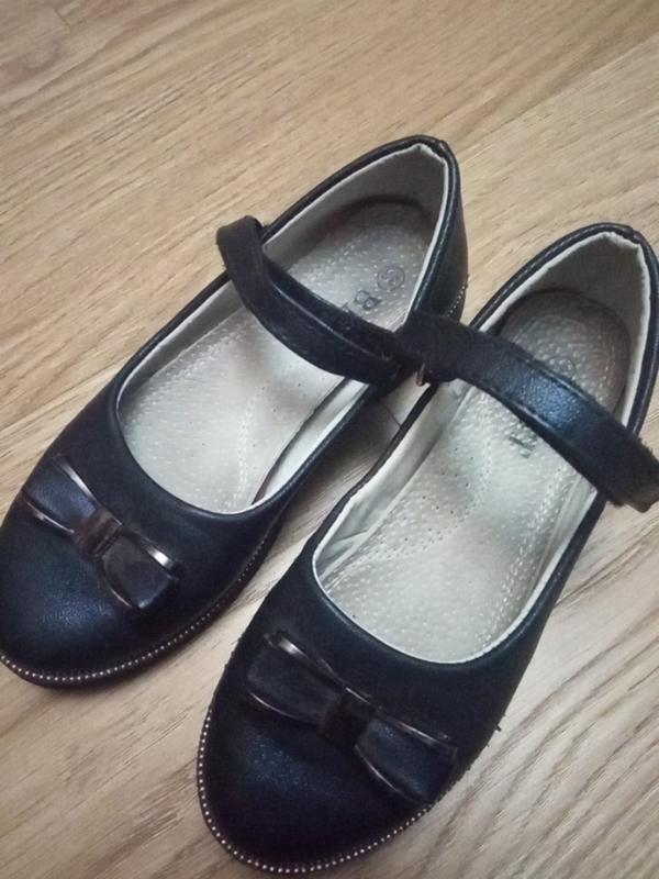 темно-сині туфлі для дівчинки з перламутром, шкіряна устілка, застібка на липучці, 33 розмір