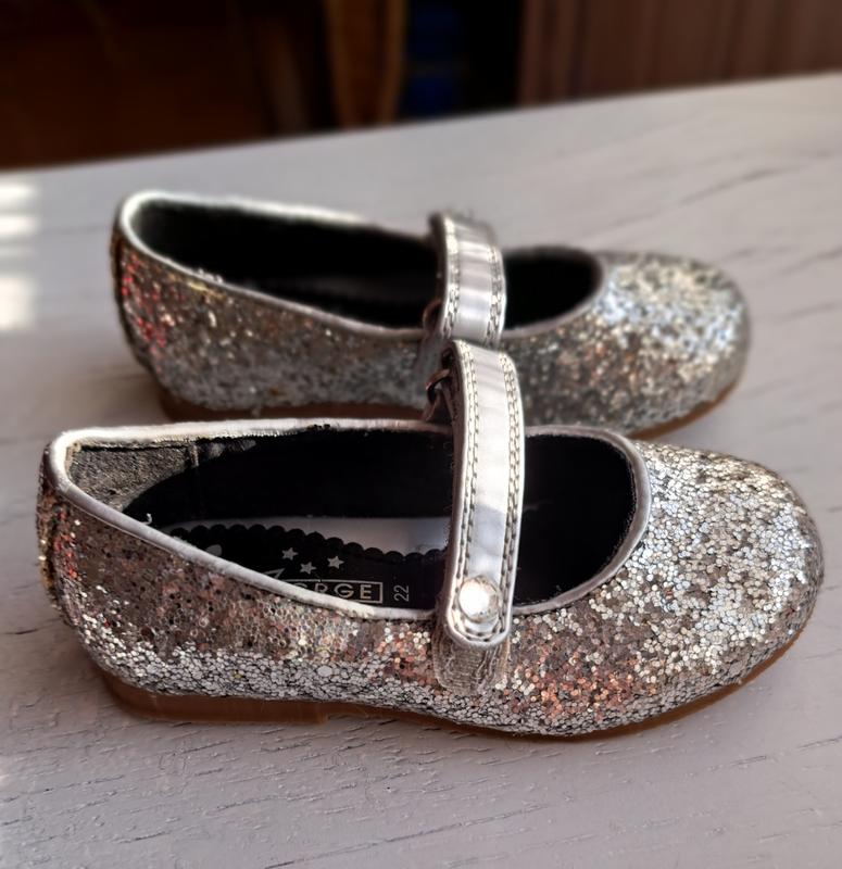 Предлагаю Вам новые туфелькие George, размер 22 длвлина стельки 13 см. Туфельки в крохую серебряную пайетку, внутреная ткань застежка липучка.