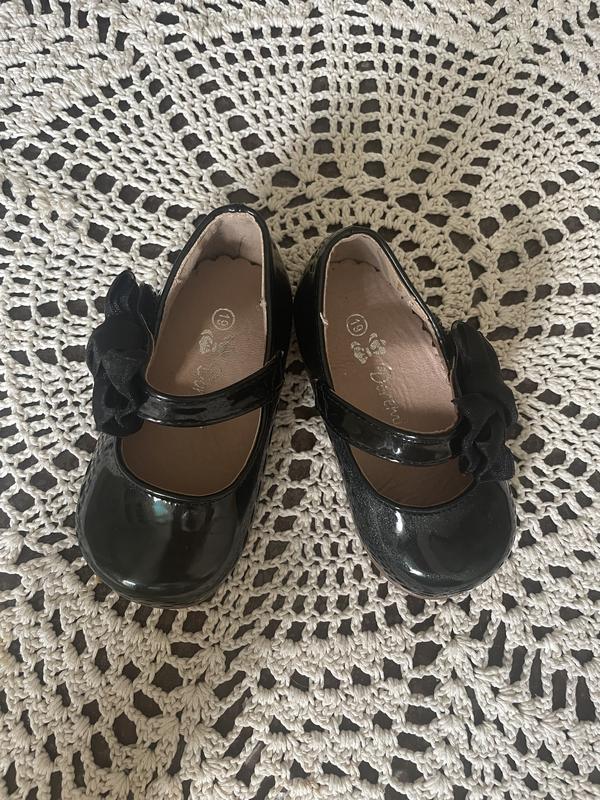 Туфельки на дівчинку, 19 розмір, 95% нові , лише у візочку на ніжках були.
