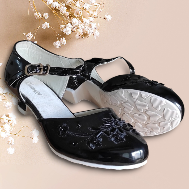 Чорні лакові туфлі на підборах для дівчинки, шкільні
