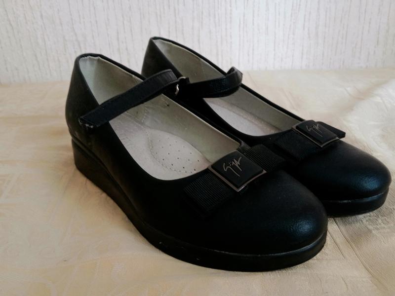 Чорні туфлі з маленьким бантиком спереду,стелька шкіряна,в ідеальному стані,одягались два рази
