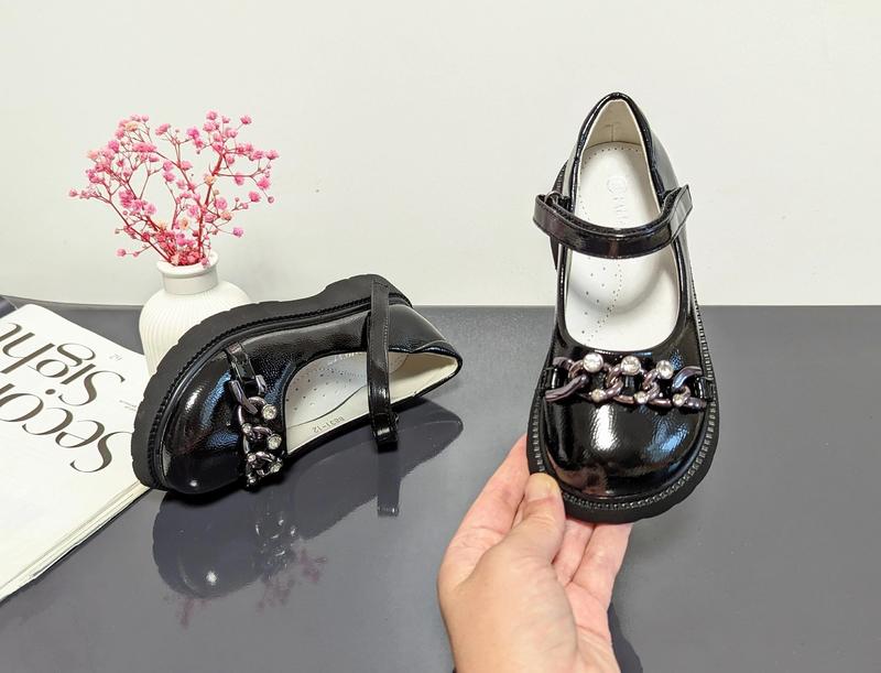 Стильні туфлі для дівчаток. Відмінна якість. Верх якісна еко шкіра ( лак) Устілка шкіряна з супінатором. Фіксація на липучку. Легкі та зручні Кожна пара в коробці. Розміри: 27р-18,7см 30р-20,2см-2шт 32р-21,2см