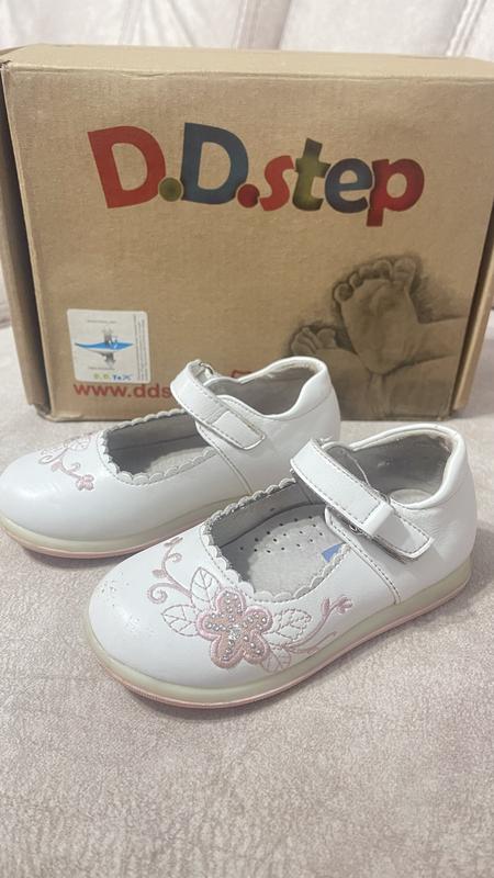 Дитячі шкіряні туфельки для дівчинки, 23 розмір, б/у, мають невеликий дефект у вигляді царапинки на носку.