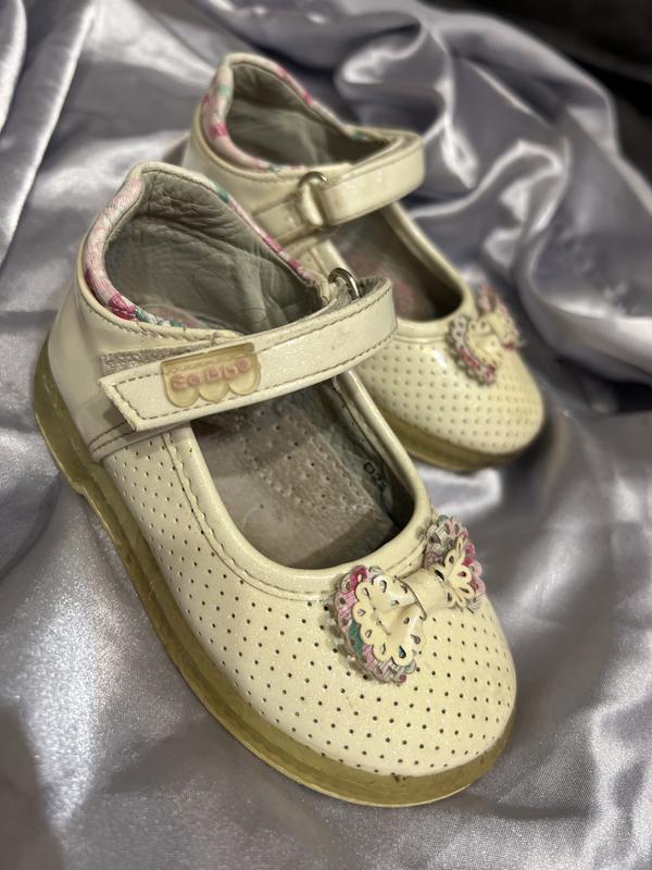 Красивые туфельки на девочку 25 размер Состояние прекрасное Цвет молочно кремовый