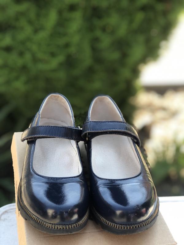 Шкіряні туфлі темно синього кольору в гарному стані. Зручні на елегантні. Розмір 33 Довжина устілки 21см Застібка на липучці.