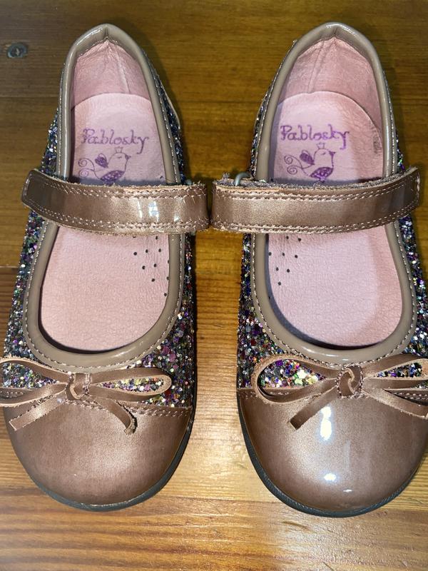 Туфлі в хорошому стані, шкіряні зі стразами, стрази всі на місці, розмір 24, устілка 14,7 см заміряла рулеткою.