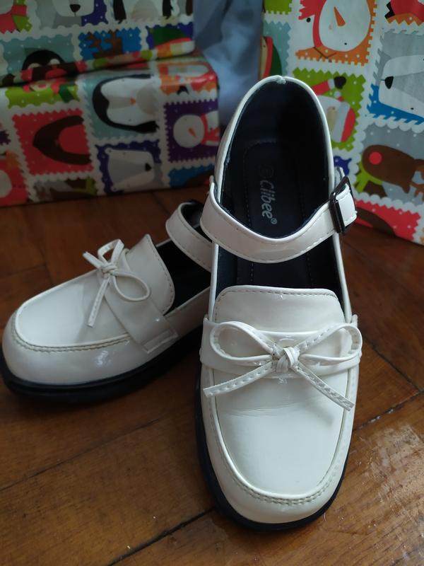 молочный цвет, размер 32, стелька 18.5 см. Стан очень хорош.
