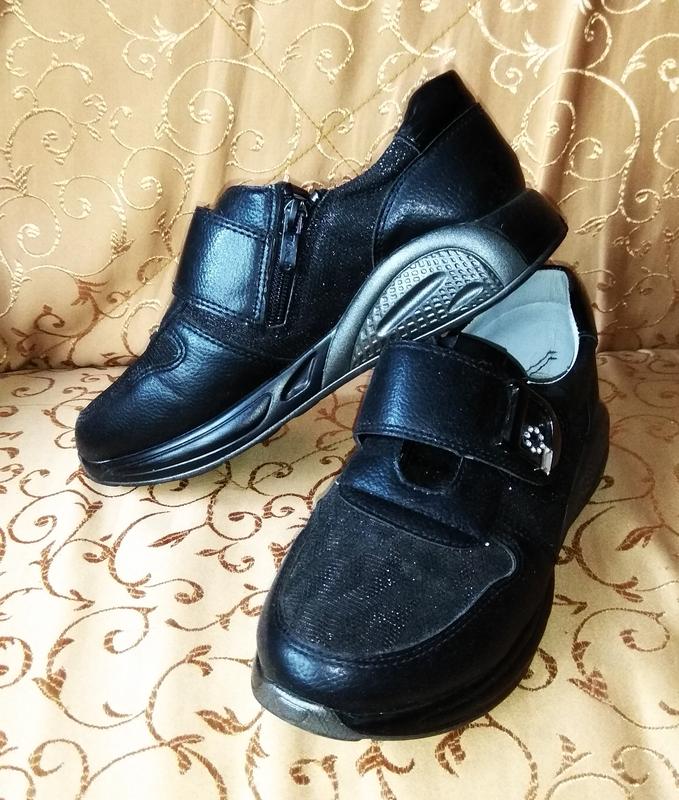 Продаються майже нові туфельки 36 розміру, устілка 22,4 см, на липучці і замочку, тому підійдуть на будь-який підйом ніжки. Донька виросла, взула пару разів. Всередині повністю шкіра, є супінатор, зверху комбіновані- шкіра і блискуча тканина