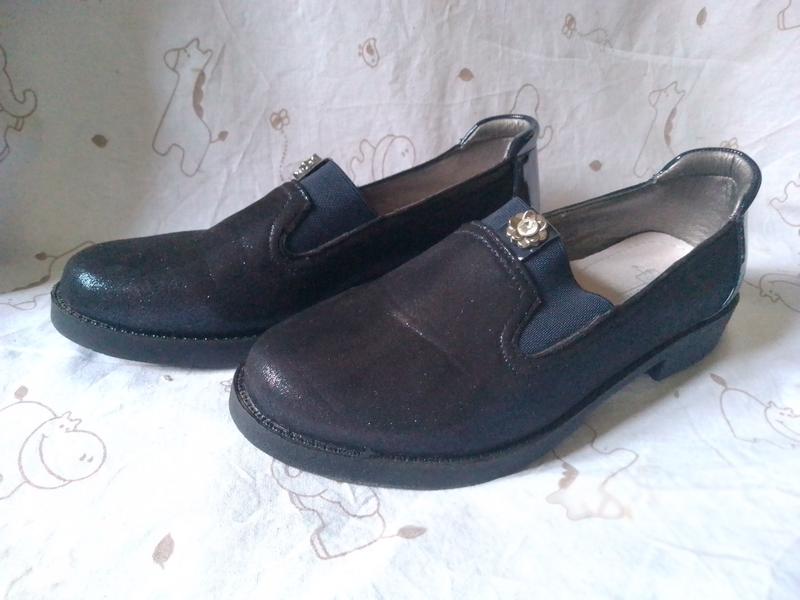 Нові туфлі на дівчинку, темно синього кольору. Розмір 33, довжина устілки 22 см.