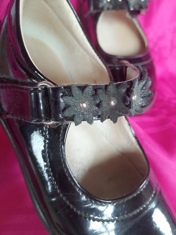 Туфельки лакові,в гарному стані.Дуже нарядно на ніжці виглядають.По встілці майже 28.5 см.Всередині повністю шкіра.Дорогий бренд.
