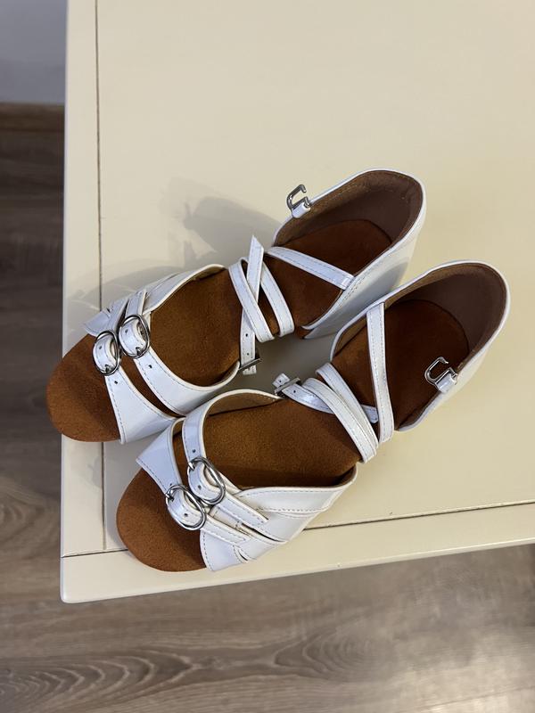 Білі туфельки, які регулються по ширині Підходять для занять танцями по усіх правилах. Блок каблук Зручна та мʼяка устілка Розміри у наявності ( у сантиметрах ) : 22 см 21,5 см 21 см 20,5 см 20 см 19,5 см 19 см 18,5 см 18 см За додатковими фото і замірами - звертайтесь в дірект
