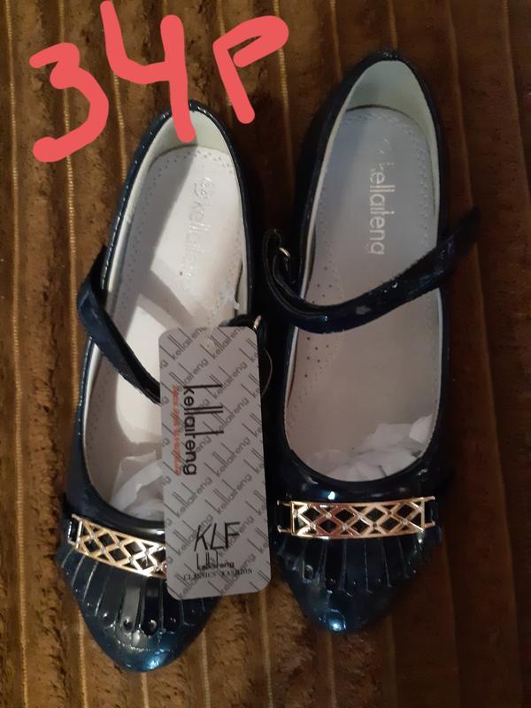 Туфельки для дівчинки нові. Розмір вказаний на фото.Якісний шкірзамінник ,лаковані,з пасочком,синього кольору.