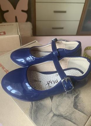 Туфлі для дівчинки фірми Next розмір 6 ( європейський) 22 український . Довжина по устілці 14- 14,5 см. Лакові, синього кольору . В ідеальному стані. Гарно пасуватимуть до святкового одягу. Без пошкоджень, одягались декілька разів на свято в садочку