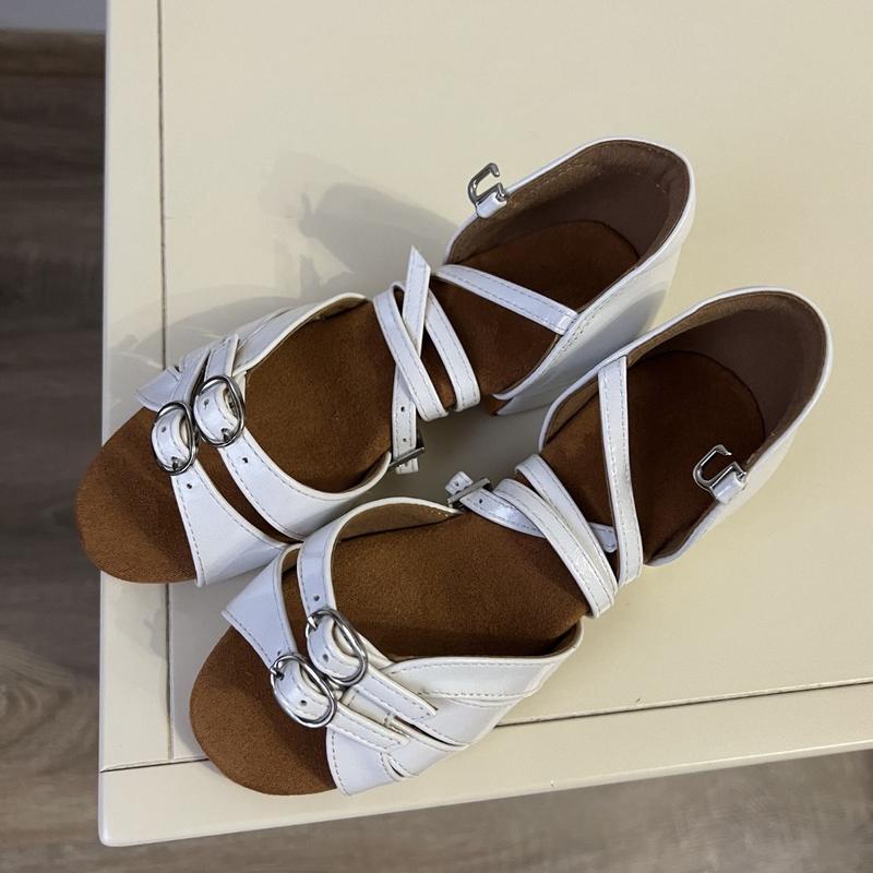 Белые туфельки, которые регулируются по ширине Подходят для занятий танцами по всем правилам. Блок каблук Удобная и мягкая стелька Размеры в наличии на ножку: 22 см 21,5 см 21 см 20,5 см 20 см 19,5 см 19 см 18,5 см 18 см По дополнительным фото и замерам — убедитесь в дырект. Есть шкаф доставка. Можно с задатком 150