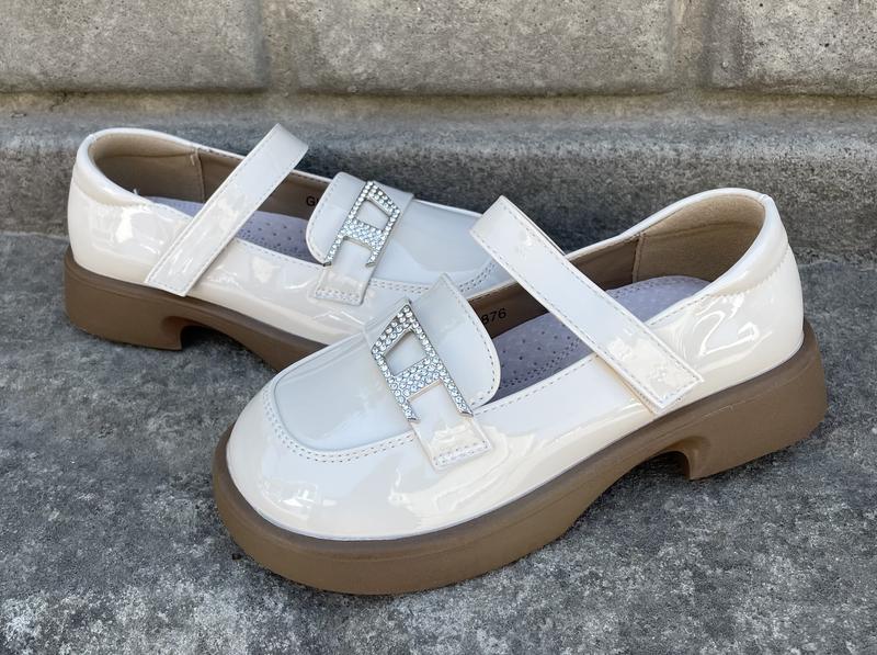 Стильна модель туфель від ТМ Apawwa Верх лак Зручна підошва Устілка шкіряна з супінатором Є застібка на липучку 28-18 см 29-18,5 см 30-19 см 31-19,5 см устілка від краю до краю