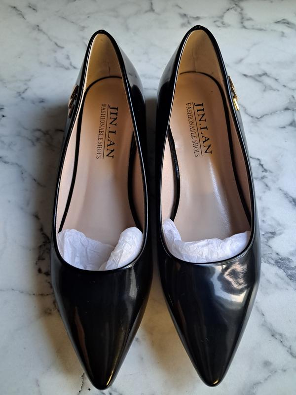 туфлі лаковані чорні, устілка 21см., на вузьку ніжку