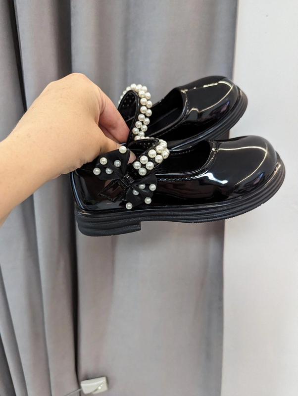 Стильні туфельки для дівчаток. Верх еко шкіра ( лак) Устілка шкіряна. Фіксація на липучку. Дуже легесенькі, м'які та гнучкі. Бусінки на закльопках. Розміри: 31р-19,4 см 33р-20,6 см 34р-21,1см 35р-21,6 см-2 шт. 36р-22,1
