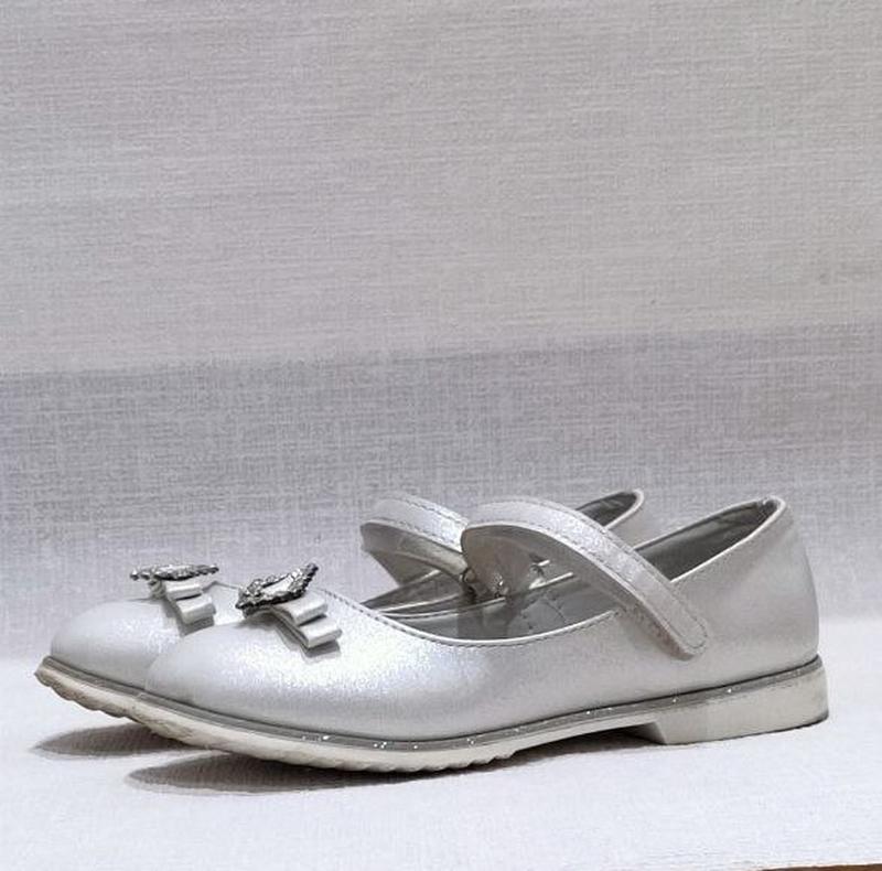 Красиві туфельки для дівчинки, ідеально підійдуть під будь-яке святкове вбрання, дуже акуратно виглядають, легенькі, на ніжці фіксуються перетинкою на липучці, що дозволить регулювати повноту і підйом. Розмір 32 по устілці 19,5 см. Стан хороший