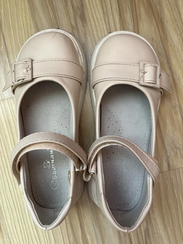 Бежевые туфли на девочку Застежка липучка Потертая краска на декоративных пряжках - см фото