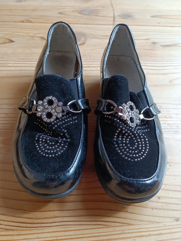 Чорні лакові туфлі з велюровою вставкою 32 розмір,довжина устілки 20см ,підбор 2 см