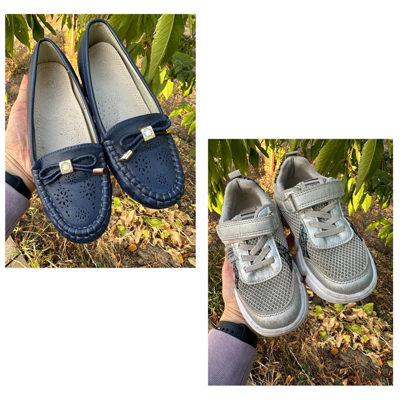 Стан нових, але десь загубилась китиця, шо кріпиться на кінець бантика (на фото видно) Довжина устілки 19,7 см Ціна 260 грн Зручні кросівки в стилі OFF—White на липучці для дівчинки розмір 30 довжина устілки 18,5 см. Стан — хороший (треба попрати, цей недолік враховано у вартість) Ціна 360 грн