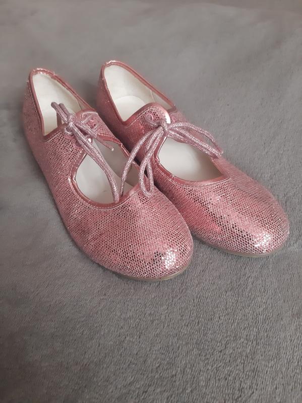 Продам фірмові степовки Tappers & Pointers dancewear у чудовому стані. Рожеві з блискітками, зав'язуються шнурками, чудові для виступів. Розмір 2, устілка - 21,5см. Нові коштують 1500грн