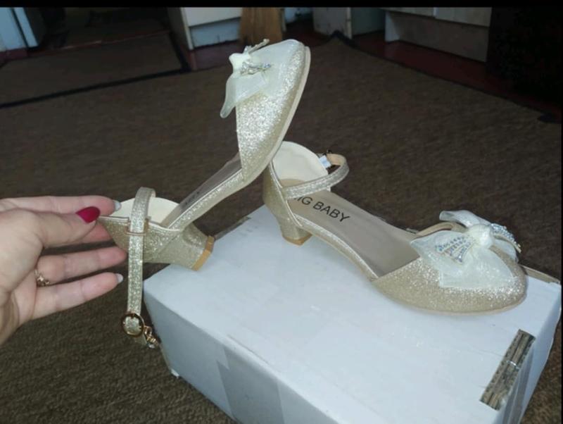 дитячі золоті туфлі. 30 розмір , на невеликому каблуку саме для принцеси. фото надам ще якщо потрібно.
