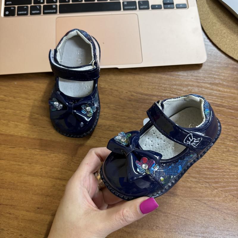 Чудові туфельки. Зручні, практичні, гарна якість. Застібка- липучка. Устілка- шкіра, супінатор. Розміри: 21 – 12,2 22 – 13,0 23 – 13,7 24 – 14,1 25 – 14,9 26 – 15,5